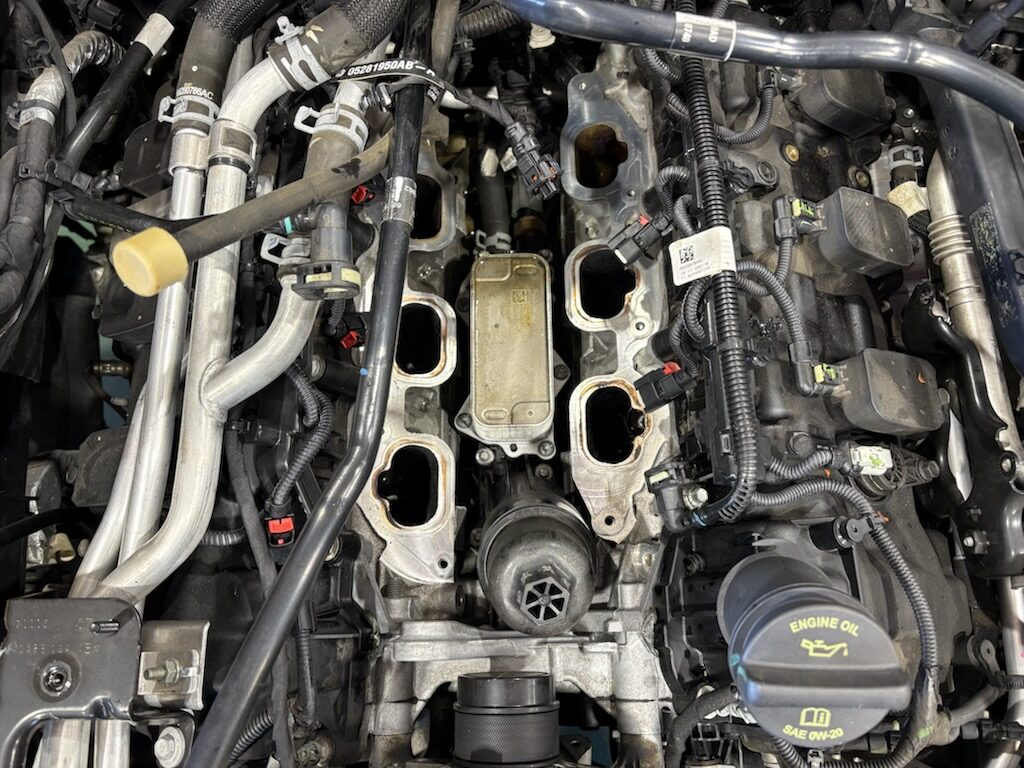 JLラングラー 3.6Lエンジンのオイル漏れ修理です。