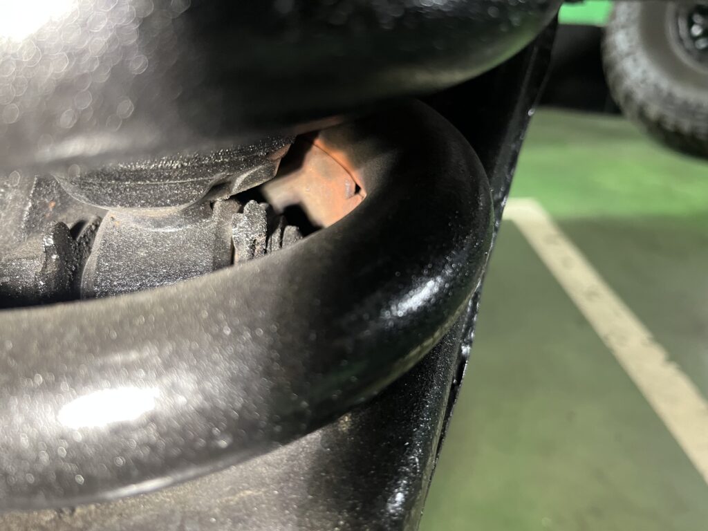 最近少なかったのですが、久々にロアーアームのスプリングマウントのストッパーがひび割れてました。